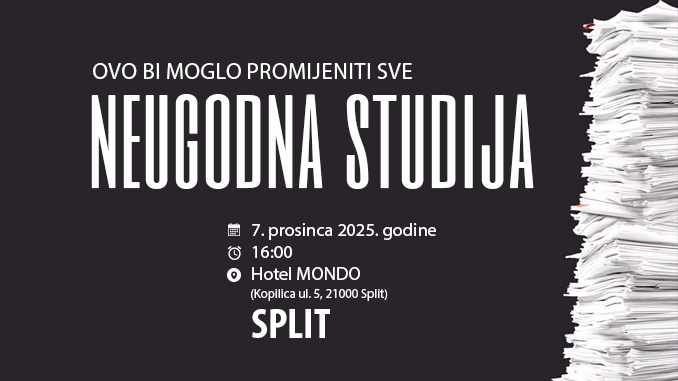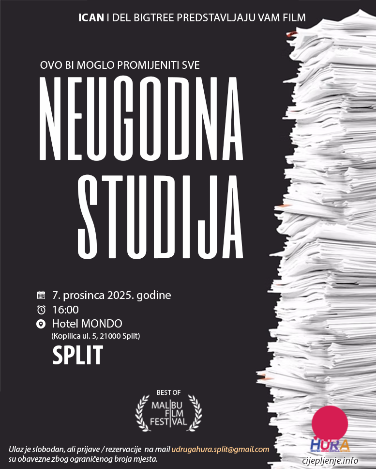 Nakon uspješno održane Hrvatske premijere dokumentarnog filma “An Inconvenient Study” (Neugodna studija) održane u Zagrebu, pozivamo vas na prikazivanje istoimenog dokumentarca u Splitu koje će se održati 7. prosinca 2025. godine s početkom u 16 sati (Hotel MONDO, Kopilica ul. 5, 21000 Split).